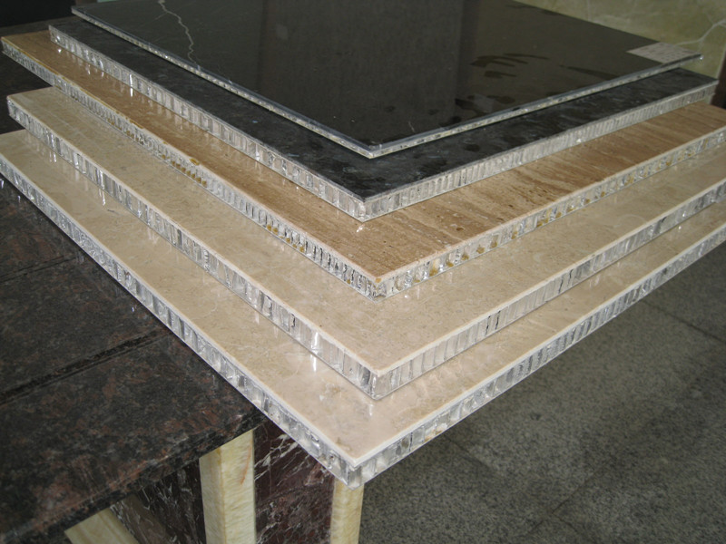 鋁蜂窩板采用高強(qiáng)度3003鋁合金作面板,高密度鋁蜂窩芯做芯材,面板常規(guī)厚度為0.8mm,1.0mm,板總體厚為10mm,15mm,25mm。其它規(guī)格結(jié)構(gòu)和尺寸可根據(jù)需要設(shè)計(jì)和制造,以滿足各種用途的需要。