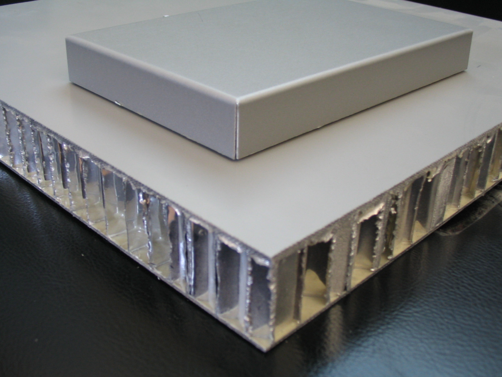 鋁蜂窩板采用高強度3003鋁合金作面板,高密度鋁蜂窩芯做芯材,面板常規(guī)厚度為0.8mm,1.0mm,板總體厚為10mm,15mm,25mm。其它規(guī)格結(jié)構(gòu)和尺寸可根據(jù)需要設(shè)計和制造,以滿足各種用途的需要。