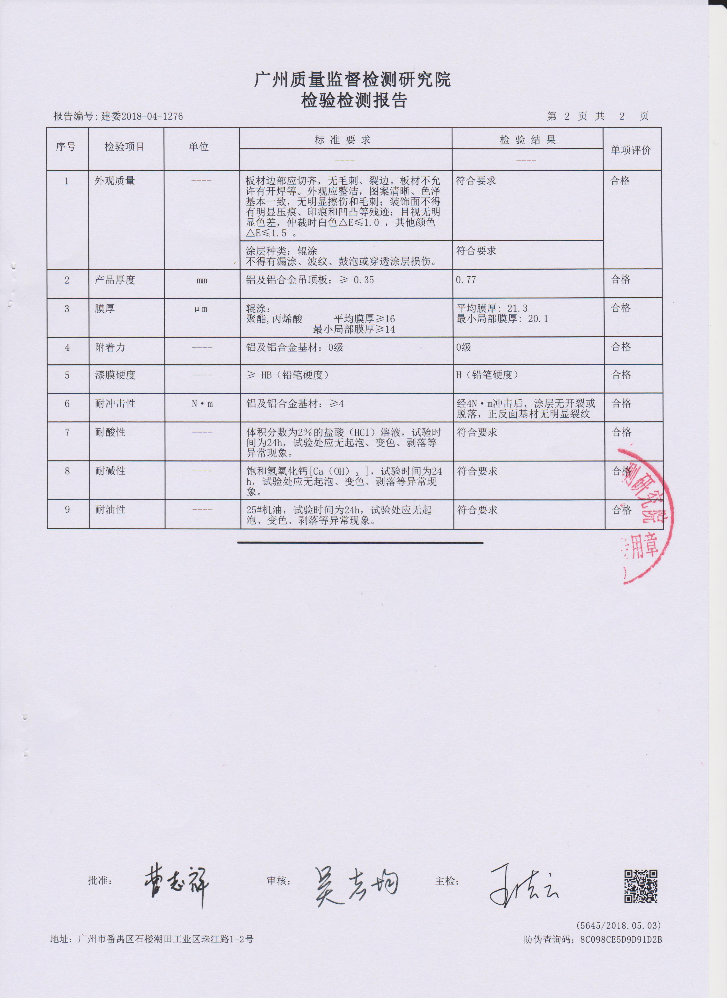 聚酯輥涂鋁合金天花板檢測報告