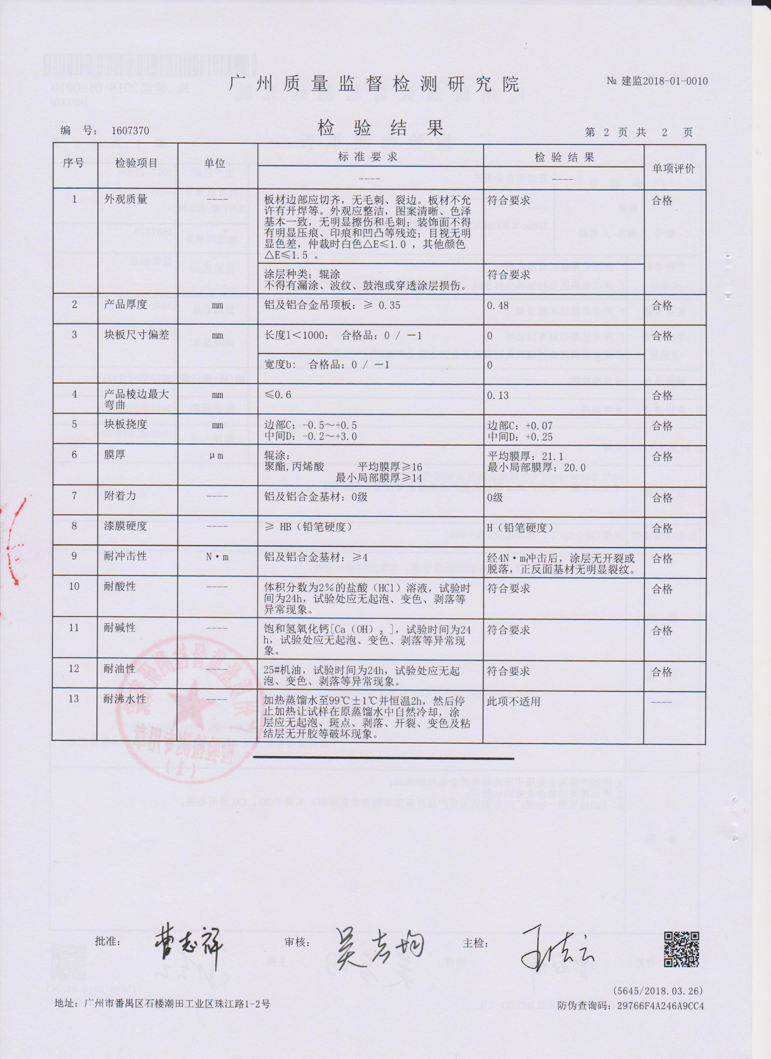 高級(jí)鋁合金天花檢測(cè)報(bào)告