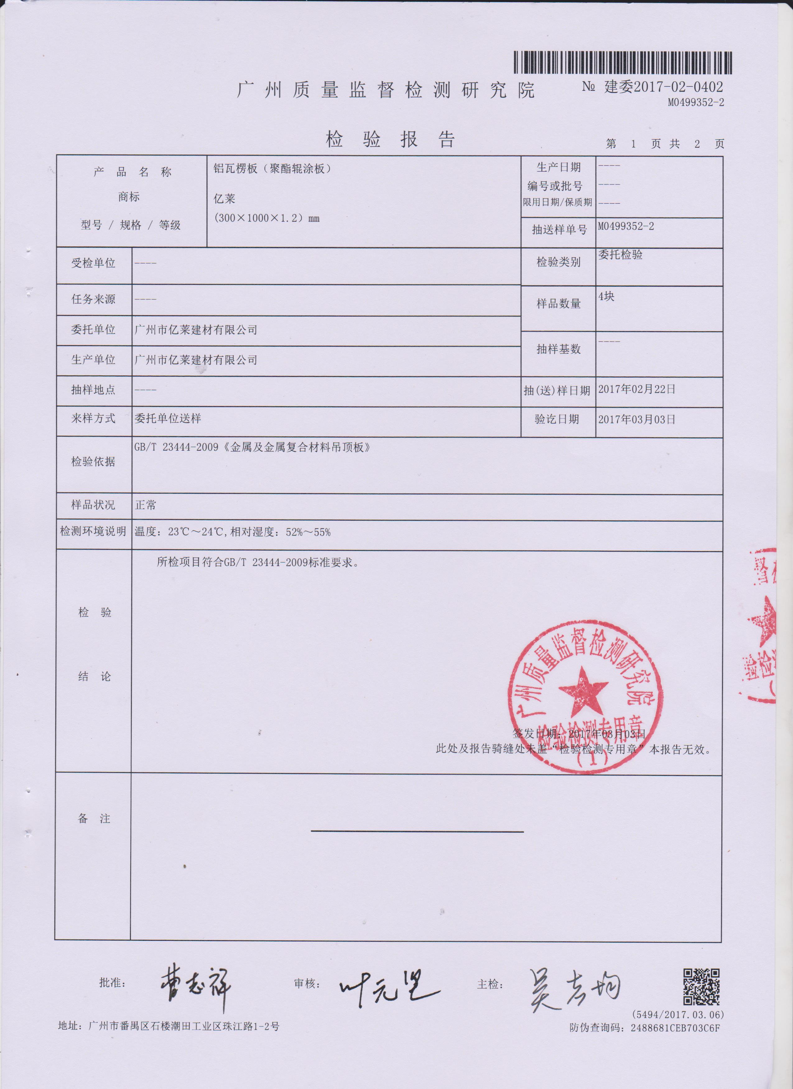鋁瓦楞板(聚酯輥涂板)檢測報告