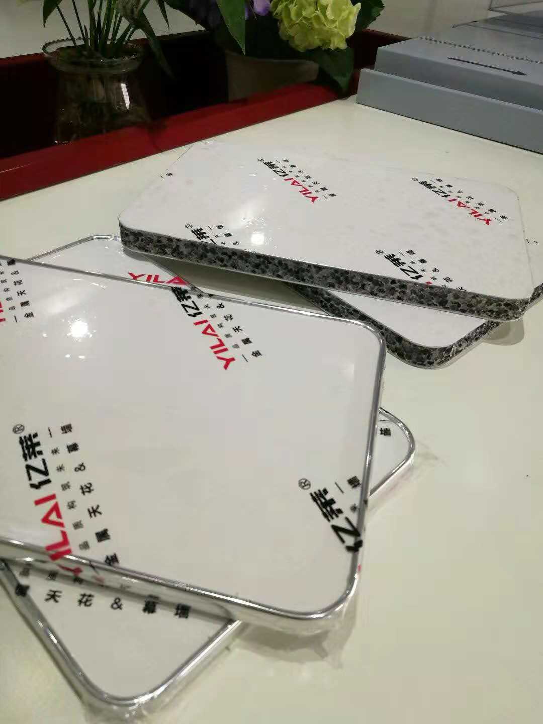 億萊鋁合金蜂窩板的蜂窩結構形成的中空蜂窩單元空間,致使空氣之間不產生對流從而使板塊具有良好的隔熱、保溫、防潮性能;同時由于墻板是中空蜂窩復合體結構,具有良好的隔音功能,板面沖孔后達到很強吸聲效果;